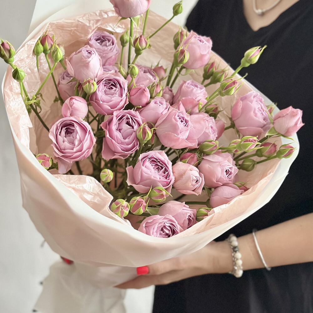 Кустовые пионовидные розы в нежно-лавандовом цвете